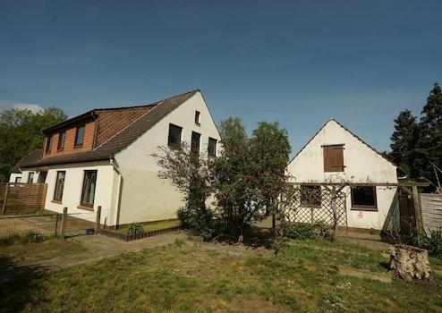 Das Haus liegt mittig auf dem Grundstück mit Gartenflächen sowohl zur Straßen- als auch zur Rückseite. Garagenbau und Stellmöglichkeiten vorhanden. Ein kleines Nebengebäude im hinteren Bereich bietet etwa 50 qm Nutzfläche.