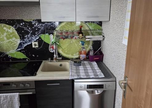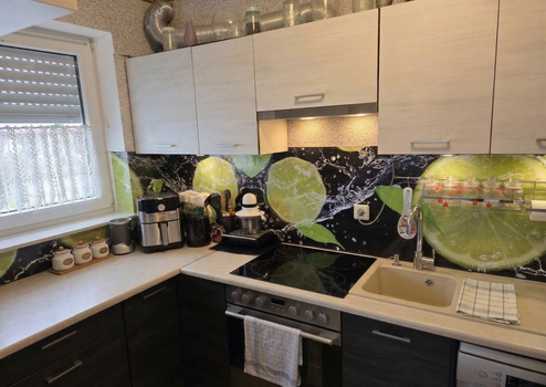 Die separate Küche ist mit einer Einbauküche ausgestattet und verfügt über Herd, Backofen und Spülmaschine sowie ausreichend Stauraum. Die Arbeitsflächen bieten genügend Platz für die tägliche Nutzung.