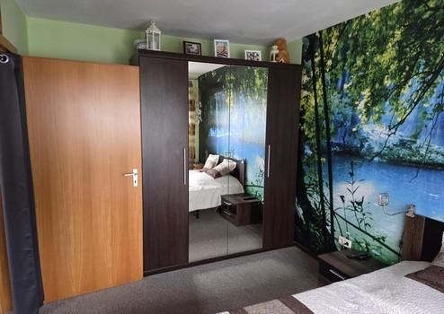 Im Schlafzimmer finden bequem ein Doppelbett und ein Kleiderschrank Platz. Die ruhige Lage innerhalb der Wohnung schafft eine angenehme Atmosphäre zum Entspannen.