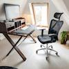 Ein gemütlicher Home-Office-Platz mit Schreibtisch, Bildschirm und Stuhl, bietet die perfekte Möglichkeit für produktive Stunden.