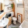 Das modernisierte Badezimmer verfügt über eine Dusche und ein WC sowie Badezimmer-Mobiliar.