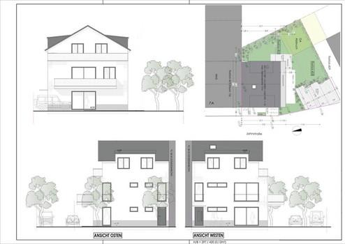• Es liegen vollständig ausgearbeitete Baupläne für einen Bauantrag einer großzügigen 2-Familienhaus-Doppelhaushälfte mit ca. 200 m² Wohnfläche und 7 Zimmern vor, der in Kürze eingereicht wird.