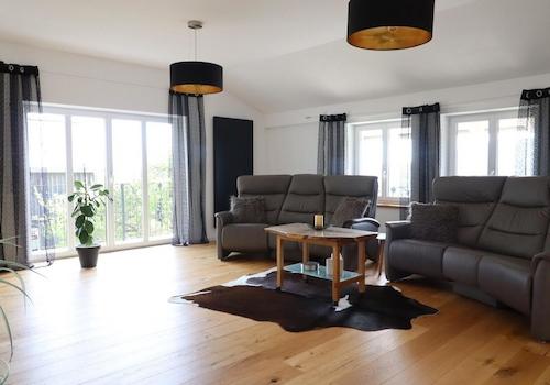 In den oberen Etagen erwartet Sie eine großzügige Wohnung mit viel Platz für die Familie. Mehrere Zimmer, ein heller Wohn- und Essbereich sowie eine attraktive Dachterrasse schaffen ein angenehmes Wohnambiente und bieten ausreichend Raum für eine Familie mit zwei Kindern.