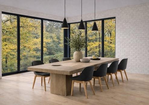 Hochwertige Materialien, Sichtmauerwerk und minimalistische Formensprache bilden einbesonderes Raumgefühl.
