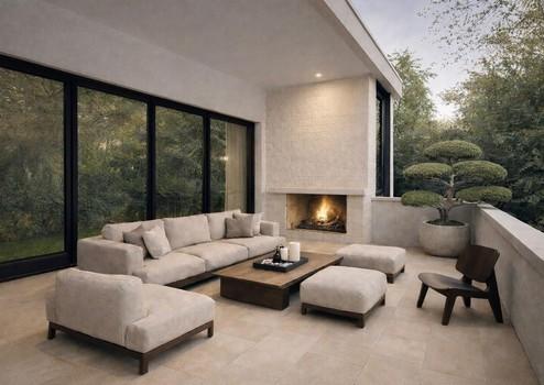 Großer Balkon mit Outdoor-Kamin