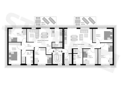 Das zweigeschossige Mehrfamilienhaus mit zwei Wohnungen überzeugt mit einer klassisch eleganten Architektur mit Walmdach und zwei behaglichen Terrassen. Der Hausentwurf kann mit Stahlbalkonen an der Gartenseite ...