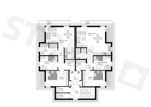Das zweigeschossige Mehrfamilienhaus mit zwei Wohnungen überzeugt mit einer klassisch eleganten Architektur mit Walmdach und zwei behaglichen Terrassen. Der Hausentwurf kann mit Stahlbalkonen an der Gartenseite ...