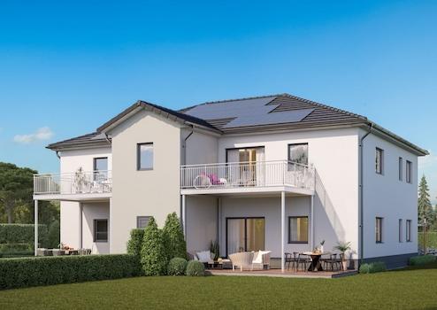Das zweigeschossige Mehrfamilienhaus mit zwei Wohnungen überzeugt mit einer klassisch eleganten Architektur mit Walmdach und zwei behaglichen Terrassen. Der Hausentwurf kann mit Stahlbalkonen an der Gartenseite ...
