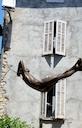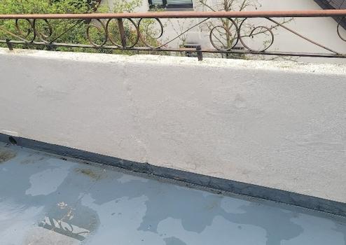 Vor dem Wohnraum befindet sich der Balkon mit Blick in die gegenüberliegenden Gärten.