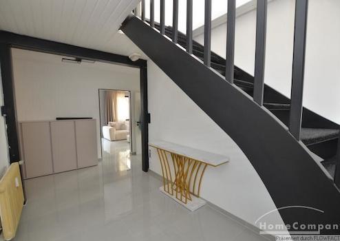 Diese moderne 4 Z. -Wohnung wird vom April bis September zur Zwischenmiete angeboten. Auf der 1. Etage befindet sich die Wohnküche und der offene Wohnbereich. Hier spielt sich das Leben ab. Davor liegt die große Dachterrasse, auf der man es sich bei passenden Wetter richtig gutgehen lassen kann. Über den Zentralen Flur mit einer offenen Treppe gelangt man in die 2 Etage Das Badezimmer mit Badewanne und ein unmöbliertes Zimmer erreicht man über diesen Flur. Dieses "Bonuszimmer" kann je nach Wahl, als zweites Schlafzimmer, oder Arbeitszimmer genutzt werden. In der oberen Etage befindet sich ein Duschbad und das Schlafzimmer. Ein separates Ankleidezimmer mit viel Platz ist ein weiteres Highlight der Wohnung. Ein eigener PKW-Stellplatz auf dem Hinterhof komplettiert das Angebot.
