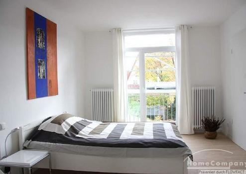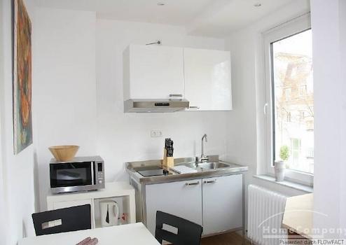 Die Wohnung ist frisch renoviert und sehr geschmackvoll und mit viel Liebe eingerichtet. Die kleine Pantry-Küche mit einem Tisch und 2 Stühlen ist vom Wohnraumetwas separiert. Vom Wohnzimmer gelangt man in das Schlafzimmer. Von hieraus betritt man den Balkon, der zum Garten gelegen ist. Das großzügige Badezimmer mit Marmorfliesen und einer ebenerdigen Dusche lässt keine Wünsche offen. Die Wohnung ist perfekt für 1 Person.