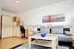 This functionally furnished flat has a high quality double sofa bed, wardrobe, cable TV with modern flat screen, desk and matching shelves. The integrated kitchen area offers a fitted kitchen with