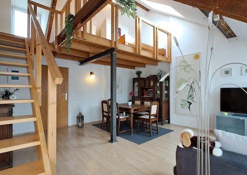 Diese von der Frühlingssonne lichtdurchflutete Eigentumswohnung im Dachgeschoss des gepflegten 6-Parteien-Hauses hat tatsächlich das "gewisse Etwas". Die sichtbare Tragwerkkonstruktion und die offene Bauweise geben der Wohnung einen schönen, individuellen Charme. Im großzügigen Wohnraum hat man richtig Bewegungsfreiheit. Und als besonderes Extra lädt die Dachterrasse "zwischen Himmel und Erde" ein, die beginnende Draußen-Saison zu genießen!