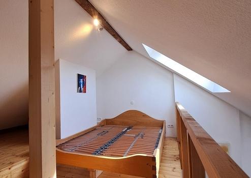 Die angegebene Wohnfläche errechnet sich nach Abzug der Dachschrägen. Die Wohnung hat mehr als 90 m² Fußbodenfläche und wirkt dadurch viel größer.