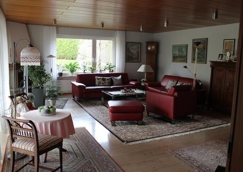Individuell ausgestattetes freistehendes Haus mit Fernblick, einem uneinsehbaren Innenhof und einem uneinsehbaren Grundstück mit einem großen Garten! Das Mietobjekt ist nur etwas für Gartenfreunde! Details werden nach ...