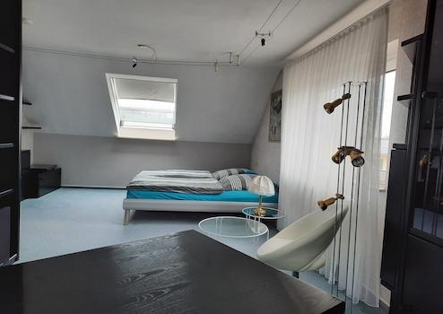 Im DG des Wohnhauses befinden sich 2 in sich abgeschlossene Studio-Wohnungen. Die 1,5-Zimmer Wohnung hat eine Wohnfläche von rd. 47m² und besteht aus einem Wohn-Esszimmer, Küche und Tageslicht-Badezimmer mit Badewanne und Dusche.