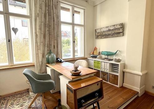 Das großzügige Arbeitszimmer (ca. 24 m2) im Erdgeschoss bietet ausreichend Platz für Freiberufler und Homeoffice. Der Glasfaseranschluss wurde bereits beantragt.