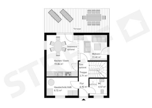 Smart-Indi-Paket: Veränderung der Fenster, Spiegelung des Grundrisses und Anbau von Bauteilen sind möglich.