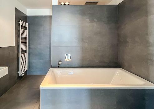 In sämtlichen Räumen wurden großformatige Feinsteinfliesen verlegt, die Eleganz und Zeitlosigkeit ausstrahlen. Der durchdachte Grundriss bietet neben dem Wohnbereich ein komfortables Schlafzimmer mit direktem Zugang zum stilvollen Bad en Suite. Dieses überzeugt mit hochwertiger Ausstattung, Badewanne sowie einem exklusiven Duschbereich mit Regenhimmel und separat regulierbaren Seitenbrausen. Ein zusätzliches Gästebad mit großzügiger Dusche ergänzt den hohen Wohnstandard.