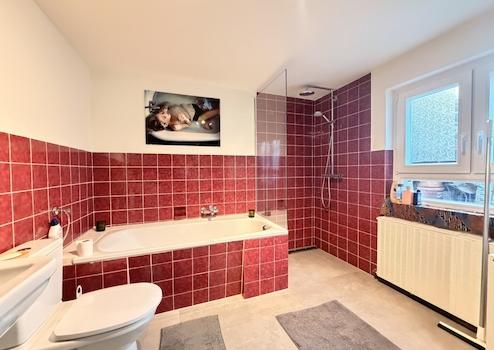 Im Erdgeschoss empfängt ein einladender Flur, von dem aus sich die einzelnen Räume erschließen. Das gemütliche Wohnzimmer überzeugt mit warmem Parkettboden und einer Atmosphäre, die zum Entspannen und Verweilen einlädt. Die angrenzende Küche bietet ausreichend Platz für kulinarische Ideen und ist funktional in den Grundriss integriert. Das großzügige Tageslichtbad kombiniert modernes Design mit einem Hauch historischen Charmes und ist mit Badewanne und ebenerdiger Dusche ausgestattet, ein Ort zum Wohlfühlen im Alltag.