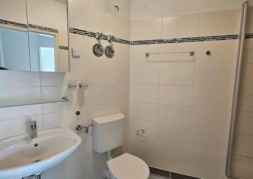 Die Bodenbeläge sind pflegeleicht und modern gestaltet. Das Badezimmer ist zeitlos gefliest und in einem guten Zustand. Besonders hervorzuheben ist der großzügige Balkon, der ausreichend Platz zum Entspannen bietet.