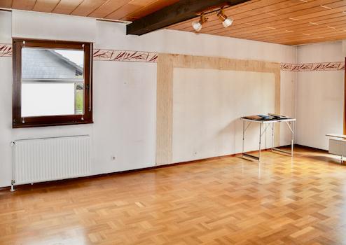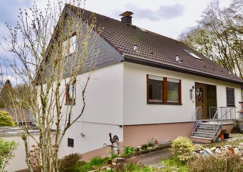Dieses Einfamilienhaus in Fertigbauweise (Fa. Streif) überzeugt durch seine ruhige Lage, in einer Sackgasse direkt am Waldrand. Von beiden Geschossen aus genießen Sie einen schönen Fernblick ins Grüne und in die Nachbarschaft. Die Immobilie präsentiert sich insgesamt in einem gestaltungsfreudigen Zustand mit reichlich Potenzial, eröffnet jedoch genau dadurch viel Spielraum, eigene Wohnideen zu verwirklichen und das Haus nach persönlichen Vorstellungen zu modernisieren. Das vorbereitete Dachgeschoss bietet die Option zur Schaffung einer separaten Wohneinheit – ideal für Mehrgenerationenwohnen oder zur Vermietung. Das Haus ist voll unterkellert, teilweise wohnlich ausgebaut, und verfügt über eine Garage. Besonders hervorzuheben ist, dass das Flachdach der Garage als großzügige Dachterrasse genutzt werden kann. Ein doppelzügiger Kamin ermöglicht zudem den Anschluss eines Kamins im Wohnzimmer.