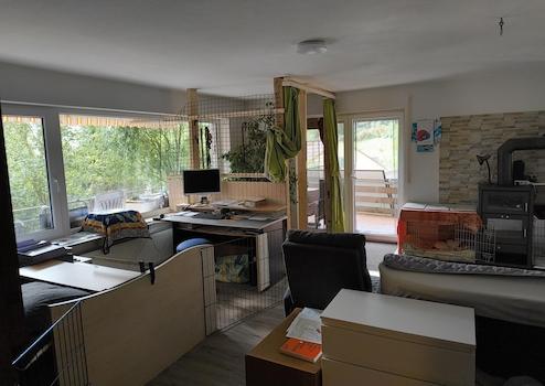 Individuell ausgestattetes freistehendes Haus mit Fernblick, einem uneinsehbaren Innenhof und einem uneinsehbaren Grundstück mit einem großen Garten! Das Mietobjekt ist nur etwas für Gartenfreunde! Details werden nach ...