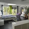 Oder man bewohnt selbst die 200 qm im EG/DG, mit dem Highlight der 2 x 4 m großen bodentiefen Fensterfronten in der 10 m langen Gaube im DG und dem 63 qm Raum im EG, der als Küche, Esszimmer, Wohnzimmer (mit Kaminofen) und Büro genutzt werden kann. Die Mieteinnahmen der restlichen drei 2-Zi-WE im UG und EG-Ostflügel können eine angenehme Einnahmequelle sein.