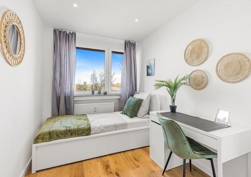 - teilmöblierte Zimmer: Sie beinhalten Bett, Schrank, Schreibtisch, Stuhl (siehe Bilder)