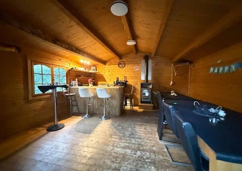 Ein gepflegtes Zierbeet schmückt die Vorderseite des Hauses. Die linke Hausseite wurde mit einer ansprechenden Kieselfläche samt dekorativem Wasserspiel gestaltet. Im rückwärtigen Bereich befindet sich ein charmantes Holzgartenhaus, ausgestattet mit kleiner Küchenzeile, Ofen und separatem WC – ideal als Hobbyraum oder gemütlicher Rückzugsort. Der überdachte Balkon auf dem Garagendach erweitert besonders die Oberwohnung um einen geschützten Außenbereich, der sich zu jeder Jahreszeit als privater Wohlfühlort nutzen lässt.