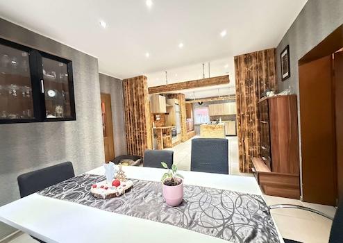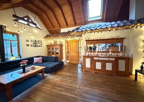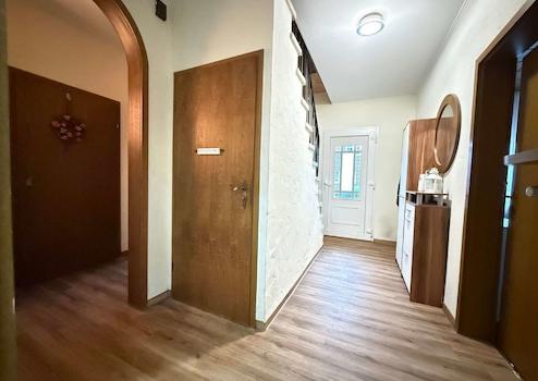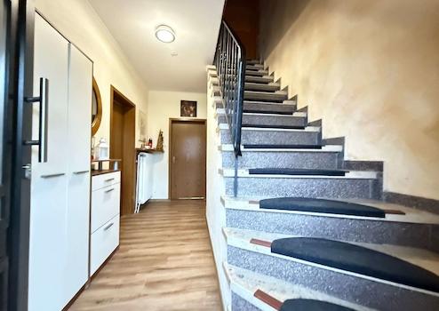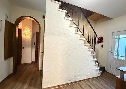 Die obere Wohneinheit überzeugt mit einem offen gestalteten Wohn-/Essbereich, der harmonisch in die Wohnküche übergeht. Sowohl aus dem Wohn- als auch aus dem Küchenbereich gelangen Sie auf den neu geschaffenen, überdachten Balkon – wintergarten ähnlich und ideal für entspannte Stunden zu jeder Jahreszeit.