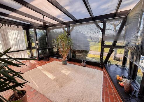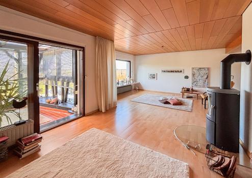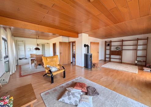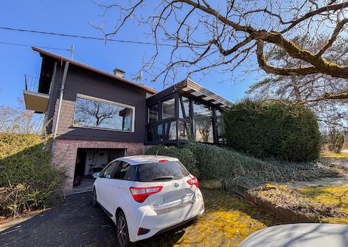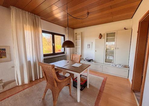 Dieses massiv erbaute und gepflegte Einfamilienhaus aus dem Jahr 1966 bietet auf zwei Etagen eine Wohnfläche von ca. 113 m². Das großzügige Grundstück mit etwa 3.964 m² teilt sich in 2 Flurstücke auf und eröffnet zahlreiche Möglichkeiten zur individuellen Gestaltung und lädt mit seiner herrlichen Aussicht zum Verweilen ein. Im Erdgeschoss erwartet Sie ein durchdachter Grundriss mit einem Gäste-WC, einem Badezimmer sowie einem Arbeitszimmer, individuell als Gästezimmer nutzbar. Das Herzstück dieser Etage bildet der großzügige Wohn- und Essbereich mit Kaminofen. Von hier aus gelangen Sie direkt in den Wintergarten. Ergänzt wird das Erdgeschoss durch eine Küche. Das Dachgeschoss bietet drei Schlafzimmer, ein separates WC und ein Tageslichtbad. Die beiden Schlafzimmer verfügen jeweils über einen eigenen Balkon mit Blick in den Garten, wobei eines der Zimmer zusätzlich mit einer praktischen Ankleide ausgestattet ist. Das Haus ist unterkellert und bietet damit zusätzlichen Stauraum. Hier befinden sich eine gemütliche Kellerbar, eine Waschküche, ein Vorratsraum sowie der Heizungsraum. Zudem besteht ein direkter Zugang zur Garage.