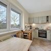 Auf der oberen Ebene befindet sich die Küche, ein Duschbad sowie Esszimmer, Wohnzimmer und ein Schlafzimmer, wobei das Esszimmer früher geteilt war. Hier waren die beiden Kinderzimmer.