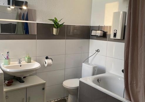 Vollbad, Einbauküche, Laminat