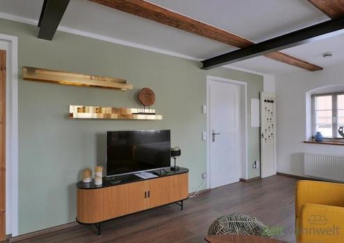 ### Please note the availability date! Bitte das Verfügbarkeitsdatum beachten! ### höbsche möblierte Wohnung in ruhiger Wohnlage in Waldkappel; WLAN; großes Wohnzimmer mit modernen rustikalen Möbeln, Sofa, Esstisch, ...