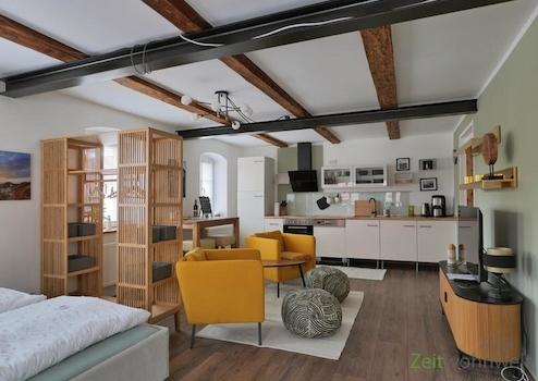 ### Please note the availability date! Bitte das Verfügbarkeitsdatum beachten! ### neu möbliertes Apartment in einem denkmalgeschützem 3-Seiten-Hof nahe der Elbe, WLAN inklusive; großer heller Wohnraum mit Doppelbett, Raumteiler-Regal; Wohnbereich mit zwei gemütlichen Sesseln, Sideboard und TV; moderne Küchenzeile mit allen Geräten und hohem Esstisch zwischen den Fenstern; großes Bad mit Waschtisch, Wanne und WC; Waschmaschine vorhanden; Reinigungsservice inklusive; Sitzecke im Innenhof (kein Foto!); Pauschalmiete 995,00 (bei 1 Person); Kaution 1.200,00 Euro; Endreinigung Mietersache; Mindestmietdauer 3 Monate; Pflichtangaben zum Energieausweis: Entfällt, Kulturdenkmal gemäß Säschsisches Denkmalschutzgesetz (SächsDSchG)