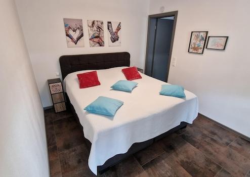 Zentrale Lage, mit Blick von der Dachterrasse in die Natur. Post und Einkauf direkt um die Ecke in kleiner, gemütlicher Ortschaft. Nahe zu Karlsruhe und Autobahnen. Bushaltestellen weniger als 5 Minuten zu Fuß