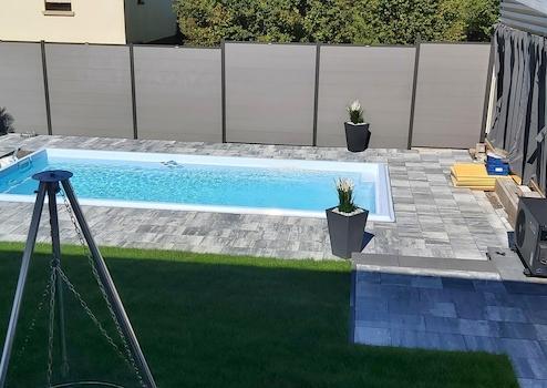 Balkon, Garten, Keller, Vollbad, Duschbad, Pool · Schwimmbad, Einbauküche, Laminat, Fliesen