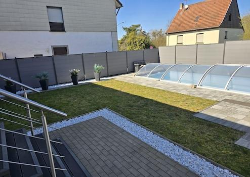 Ein Highlight ist der überdachte Pool im Garten. Die Garage im Haus und das Carport, wurden mit einem elektrischen Tor ausgestattet. Eine E-Ladestation wäre möglich. Weitere Modernisierungen wie ein neuer Zaun, Gartentür und drei Stellplätze runden das attraktive Angebot ab.