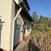 Seitlich am Haus erreicht man die Garage auch durch die rückwärtige Türe.