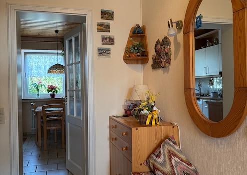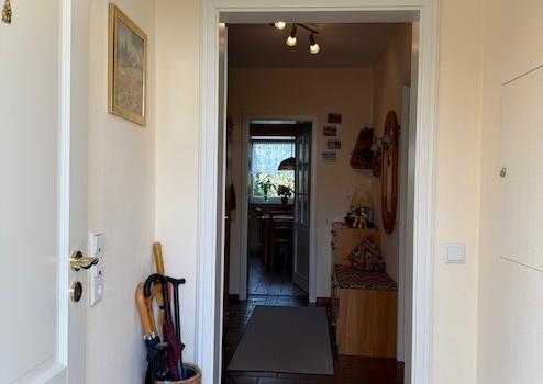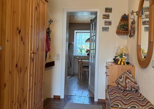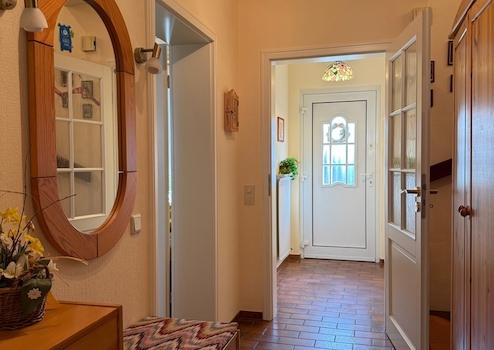 vom Hauseingangsbereich gelangt man durch die Haustüre in den hellen Flur des Hauses.