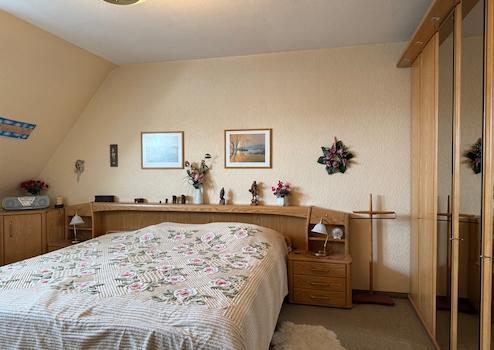 Vom Flur im Obergeschoss erreicht man sowohl das geräumige Elternschlafzimmer, welches zur Rückseite des Hauses gerichtet ist und in das geräumige zweite Schlafzimmer, welches zur Vorderseite des Hauses gerichtet ist.