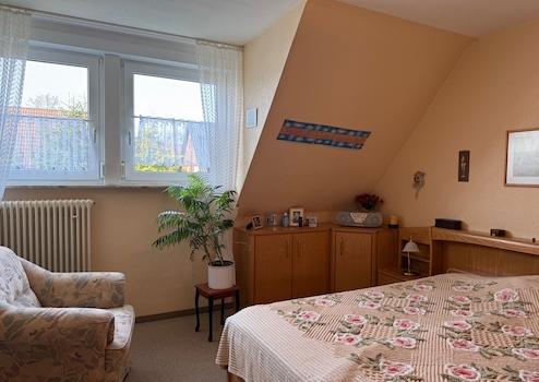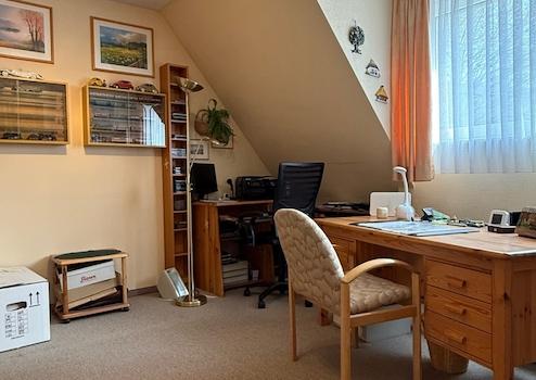 Neben dem Schlafzimmer befindet sich ein weiteres Zimmer, welches als Gästezimmer oder Arbeitszimmer genutzt werden kann. Dieses ist ebenfalls zur Rückseite des Hauses gerichtet.
