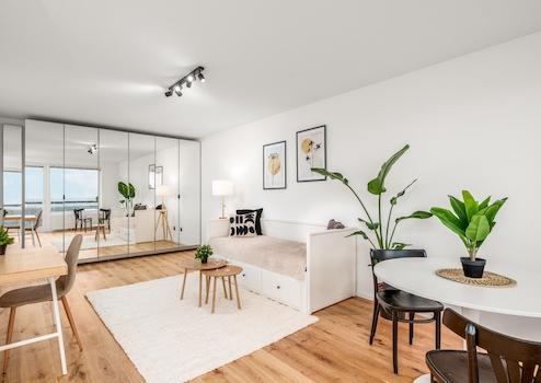Die Wohnung wird inklusive der vollständigen Möblierung und Einbauküche übergeben, ein löffelfertiges Konzept für maximale Flexibilität.