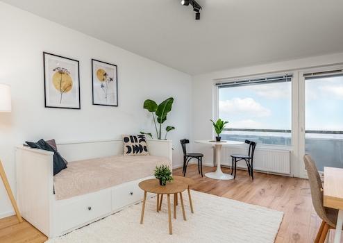 Willkommen im DEBA Hochhaus, einer Ikone des renommierten Architekten Ernst Maria Lang. Dieses Apartment im Stadtteil Solln wurde soeben aufwendig modernisiert und bietet urbanen Wohnkomfort auf höchstem Niveau.
