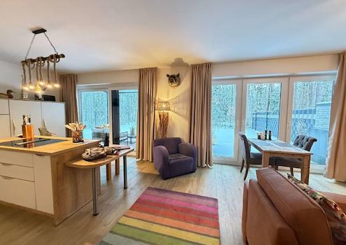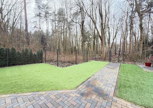 Ein echtes Highlight ist die ausschließliche Gartennutzung, die nur dieser Wohnung zugeordnet ist. Der pflegeleichte Garten mit hochwertigem Kunst-rasen bietet einen freien Blick ins Grüne und schafft eine seltene Kombination aus Wohnungskomfort und Hausgefühl – ideal zum Entspannen, Genießen oder für gesellige Stunden im Freien. Für Naturliebhaber ist ein direkter Zugang zum anliegenden Wald vorhanden, der zum Spazierengehen in die Natur einlädt.