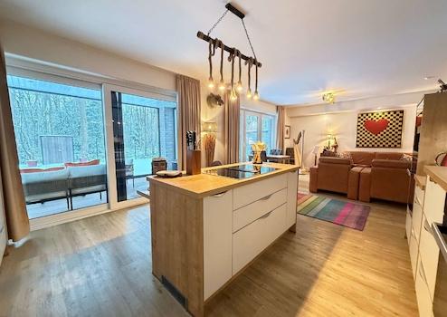Das Herzstück der Wohnung bildet der offen gestaltete Wohn- und Essbereich mit direktem Zugang zum Sommergarten. Die exklusive, moderne Einbauküche ist bereits im Kaufpreis enthalten und überzeugt durch hochwertige Miele-Elektrogeräte, ein autarkes Kochfeld mit integriertem Dunstabzug sowie eine teilweise erhöhte Arbeitsplatte – perfekt für komfortables und ergonomisches Kochen. Über eine elegante Hebeschiebetür gelangen Sie direkt in den vollverglasten Sommergarten und weiter in den eigenen Gartenbereich.