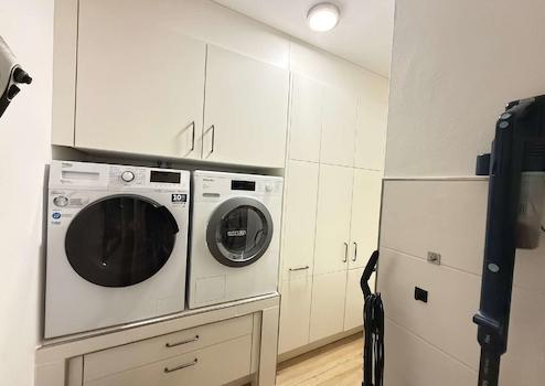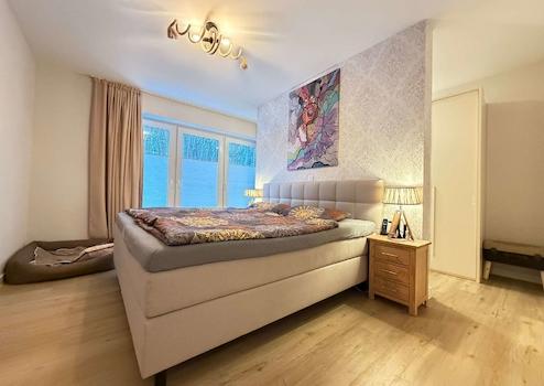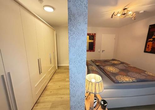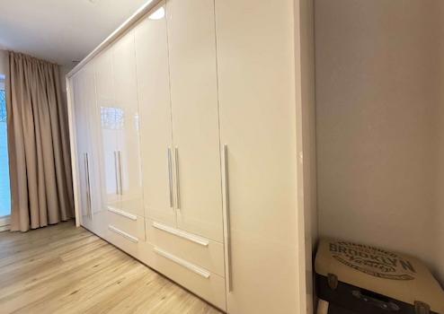 Die Wohnung verfügt über zwei Schlafzimmer, darunter ein großzügiges Hauptschlafzimmer mit maßgefertigtem, hochwertigem Kleider-Einbauschrank, der ebenfalls im Kaufpreis enthalten ist. Ein weiteres Zimmer eignet sich ideal als Gäste-, Arbeits- oder Kinderzimmer.