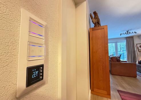 Die Wohnung ist mit einer Fußbodenheizung in allen Räumen ausgestattet, die über eine digitale Heizungssteuerung geregelt wird. Jeder Raum ist über ein eigenes Bedienfeld steuerbar. Zusätzlich sorgt eine kontrollierte Be- und Entlüftung für ein angenehmes Raumklima. Eine Gegensprechanlage mit Kamera, Glasfaseranschluss sowie ein funktionaler Hauswirtschaftsraum mit maßgefertigten Einbauschränken unterstreichen den hohen Ausstattungsstandard. Die bodentiefen Fenster sowie die großzügige Hebeschiebetür zum Sommergarten sind nahezu vollständig mit Fliegengittern versehen und verbinden Wohnkomfort, Frischluftzufuhr und Funktionalität auf angenehme Weise. Für weiteren Sichtschutz sorgen die teilweise angebrachten Plissees an den bodentiefen Fenstern.