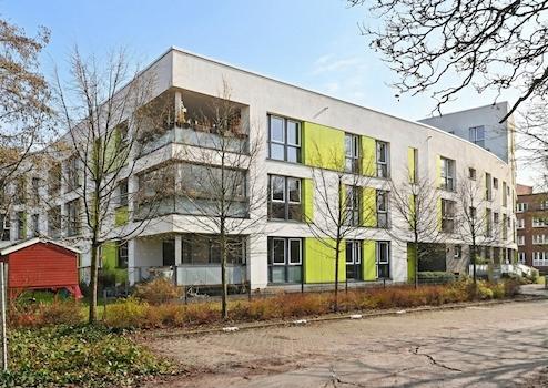 Die sog. "Sonnenhöfe" bilden eine Gemeinschaft aus 50 Wohnungen unterschiedlicher Größe mit einem innovativen Energiekonzept (Nutzung und Einspeisung von Photovoltaik & energiesparendem Blockheizkraftwerk) und erfüllen den KfW-Effizienzhaus 55-Standard.